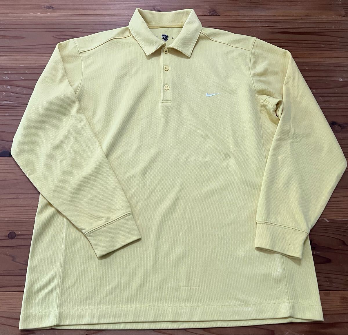 - 送料込み!NIKE GOLF 長袖ポロシャツ 黄色 XL イエロー ナイキゴルフ 180/96A GOLF ゴルフウェア ワンポイント