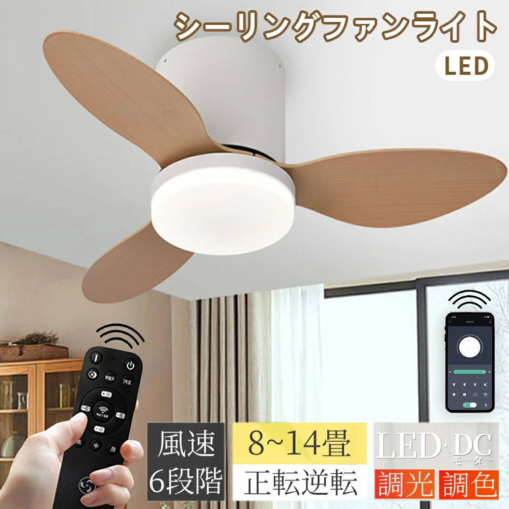 - シーリングファンライトシーリングライト DCモーター おしゃれ 軽量 薄型 LED 扇風機 調光調色 北欧 リモコン 脱衣所 空気循環 和室 洋室