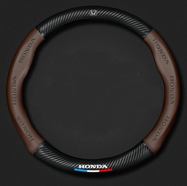 - ホンダ専用 ハンドルカバー ステアリングカバー 円型 スエード素材 カーボン調 ブラウン