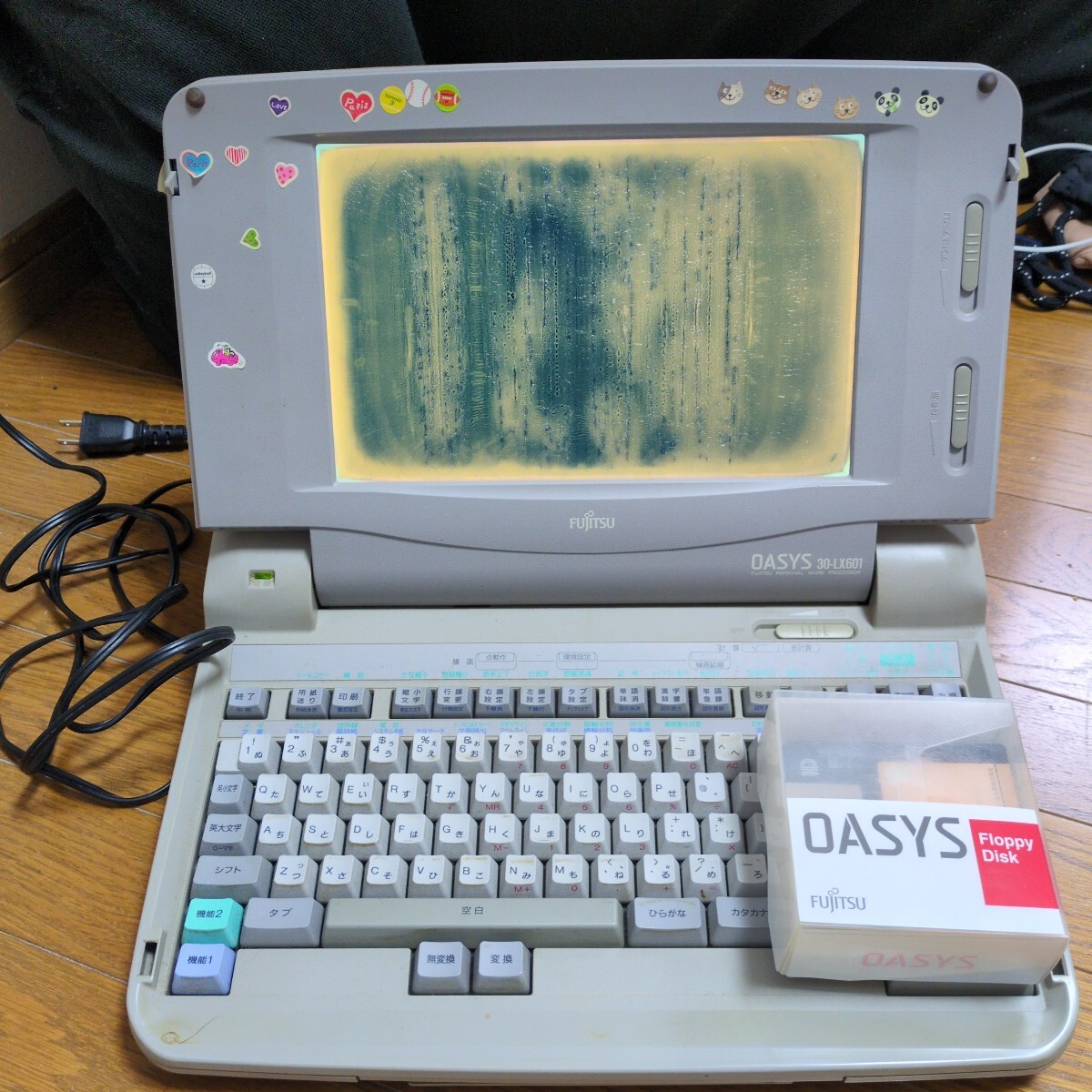 - ワープロ 富士通 オアシス OASYS 30 lx 601 通電 画面ヤケ システムフロッピ 揃い フロッピー