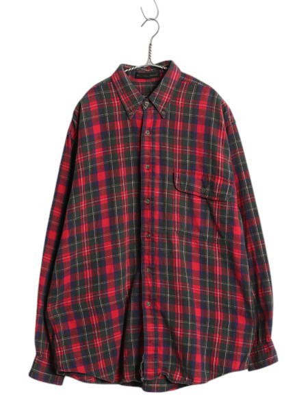 > 90s エディーバウアー チェック ボタンダウン フランネル シャツ メンズ L オールド 黒タグ ネルシャツ コットン 長袖シャツ ポケット付き