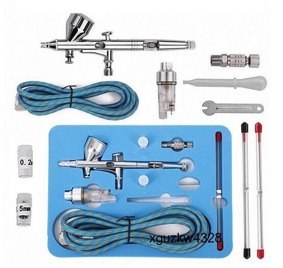 > 高品質高機能 エアブラシ セット 0.2mm 0.3mm 0.5mm ノズルセット デュアルアクションエアキット 英語マニュアル/XS110