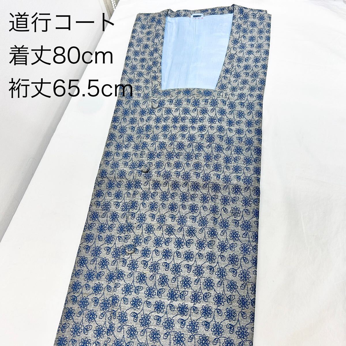 ★美品★アンティーク 正絹 道行コート アンティーク着物 花柄 着物 袷 古布 和装 レディース 女性 グレー×青 (04297②並