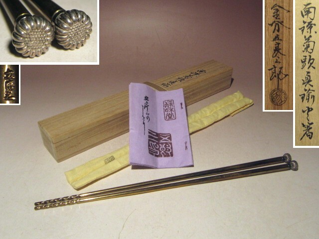 - 金谷五郎三郎 南鐐菊頭真鍮 火箸★風合いの良い逸品★o501