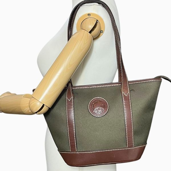 - 美品ハンティングワールド サファリ 舟形トートバッグ ハンド 本革 レザー キャンバス レディース カーキ HUNTING WORLD B0860