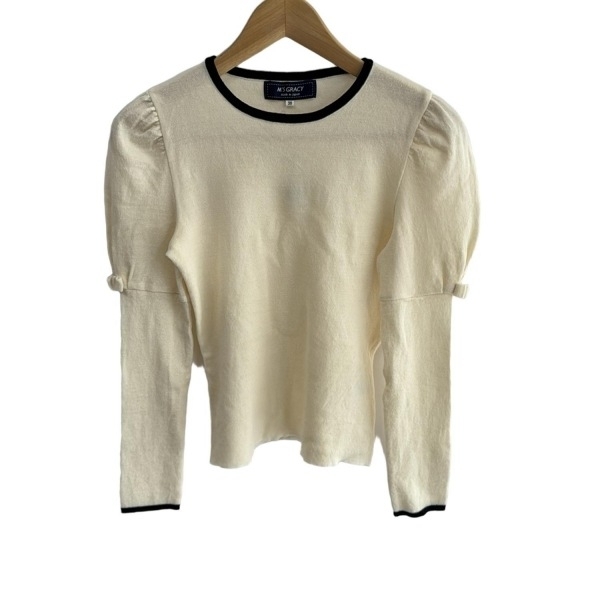 > エムズグレイシー M'S GRACY 長袖セーター/ニット サイズ38 M - アイボリー×黒 レディース クルーネック/リボン 美品 トップス