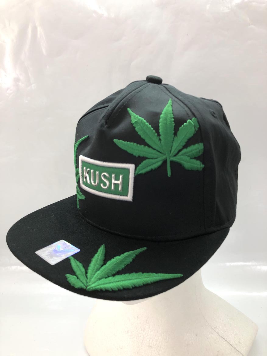 - KUSH マリファナ柄 刺繍 スナップバック キャップ 黒 ■■ ☆ fdb6 メンズ