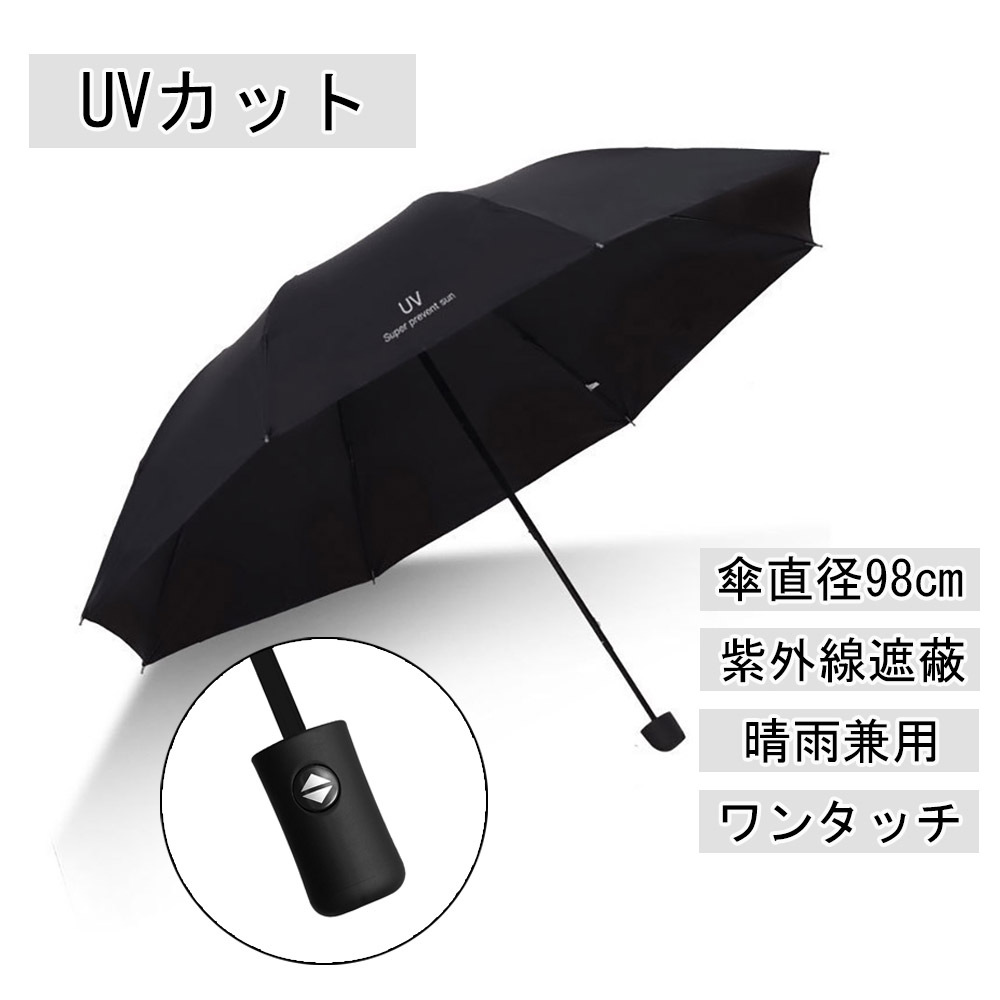 - 折りたたみ傘 晴雨 兼用 UVカット ブラック 8本骨 紫外線 日傘 雨傘 雨天 折り畳み傘 ワンタッチ 自動 黒