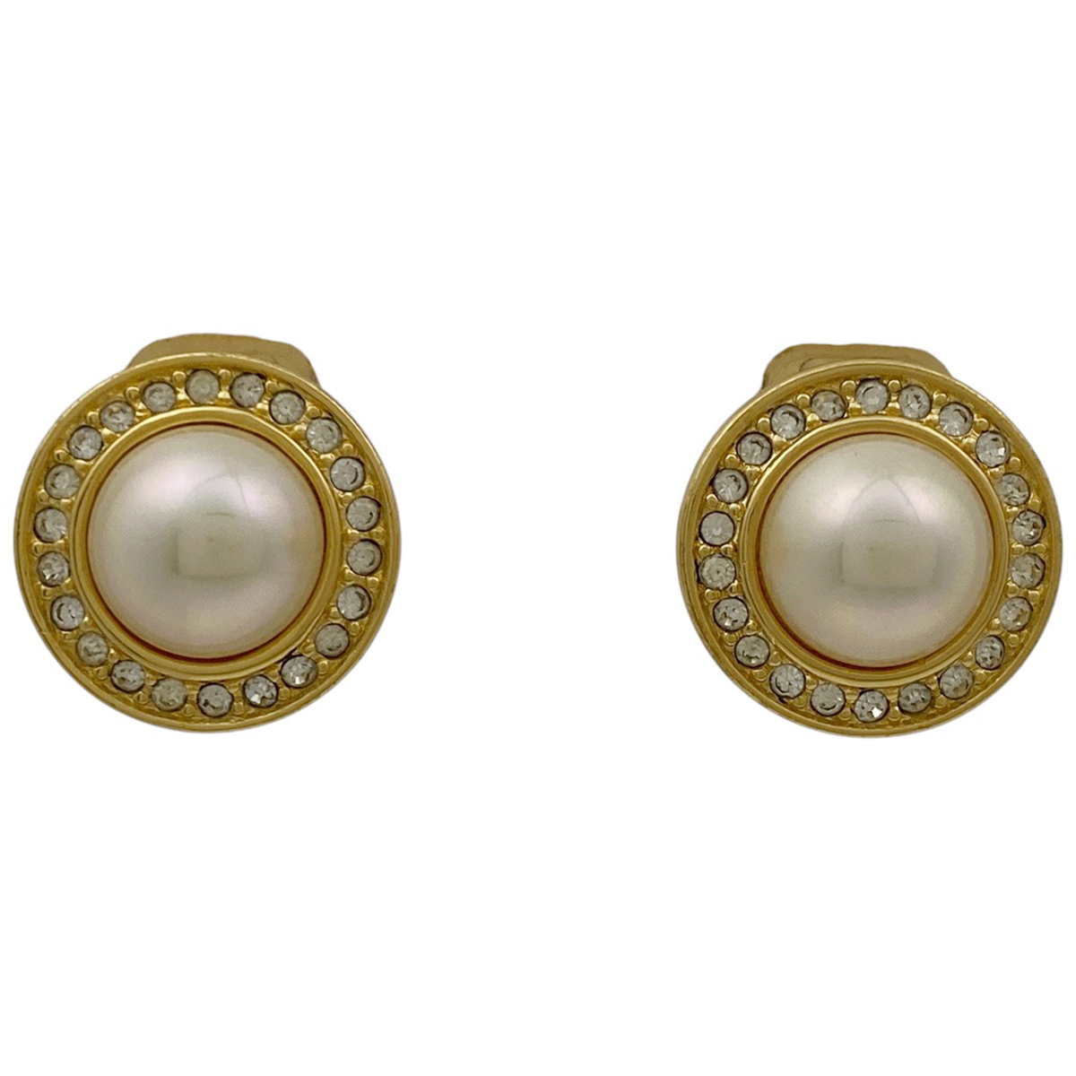 > クリスチャンディオール Christian Dior ラインストーン デザイン イヤリング ラウンド 丸型 GP フェイクパール ゴールド レディース 中古