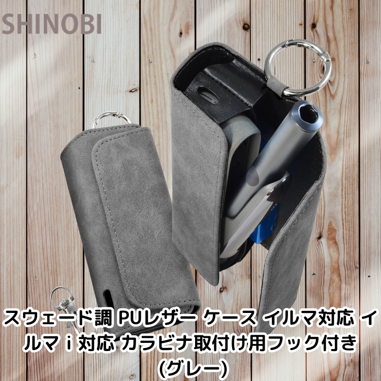 - イルマ対応 イルマi対応 互換品 スウェード調 PUレザー 保護ケース カラビナ取付け用のフック付き (グレー)