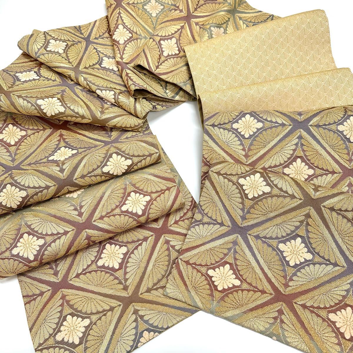 - 【七福】c506 逸品 高級品 正絹 袋帯 六通 七宝花菱 金糸 豪華