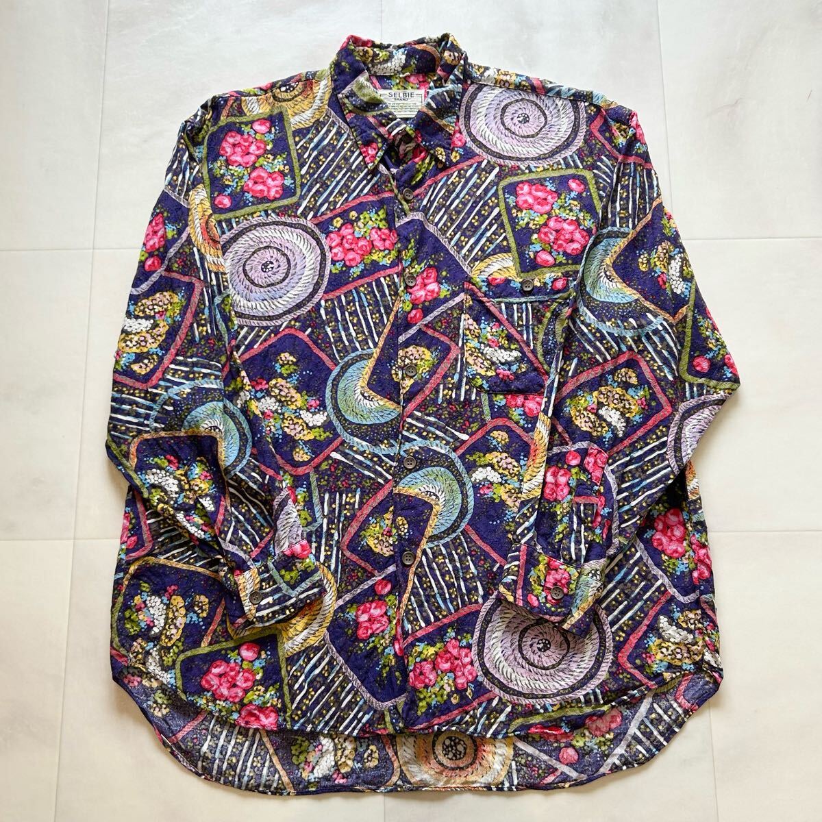 - SELBIE BRAND 総柄 柄シャツ 花柄 レトロ アート ビンテージ 長袖シャツ レーヨン100%