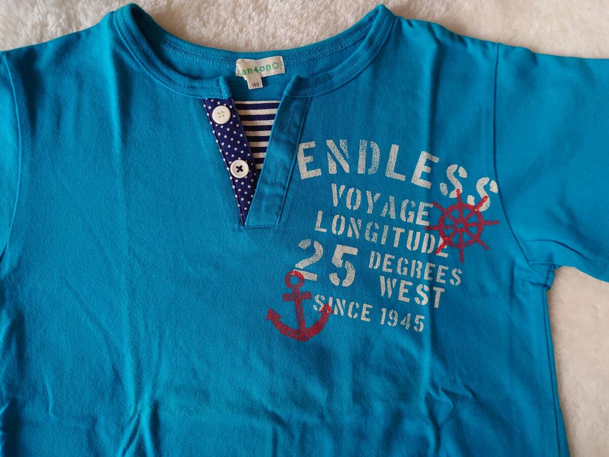 > 3can4on*サンカンシオン*重ね着風半袖カットソー*140cm*男の子*ワールド*ストライプドットいかりマーク*お洒落*