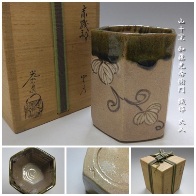 - 【T-381】山十窯 加藤光右衛門 織部 火入 共箱付 茶道具