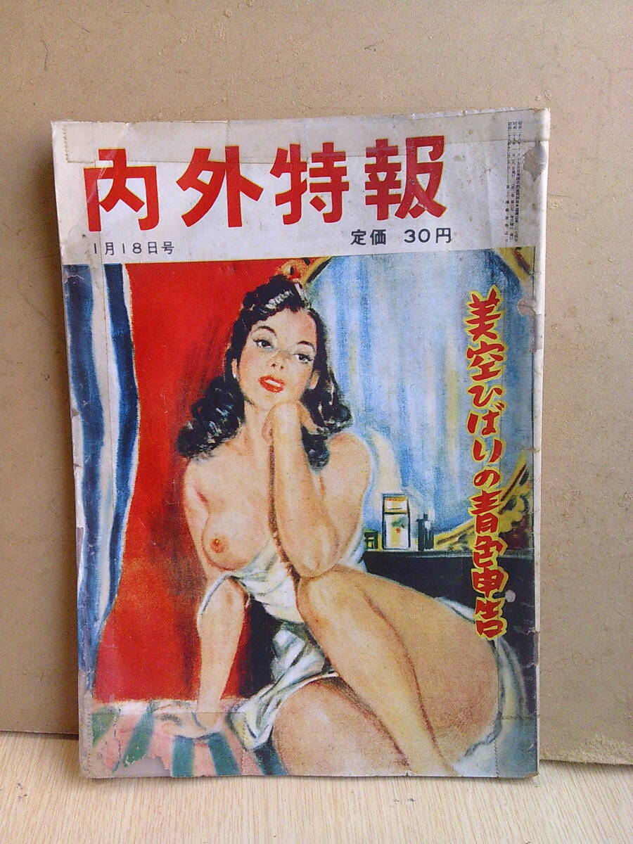 > ■ く-721 内外特報 昭和29年 中古 初笑い 新春 お色気放談 美容界の関ケ原争奪戦 ほか 全78ページ 縦25.5cm 横18.2cm
