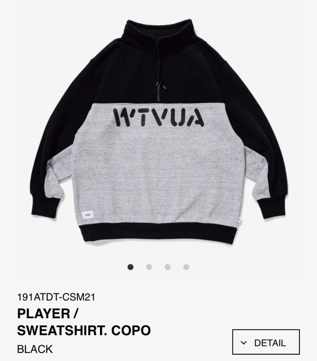 > 19SS WTAPS PLAYER SWEATSHIRT. COPO BLACK スウェット スウェットシャツ (WT3)