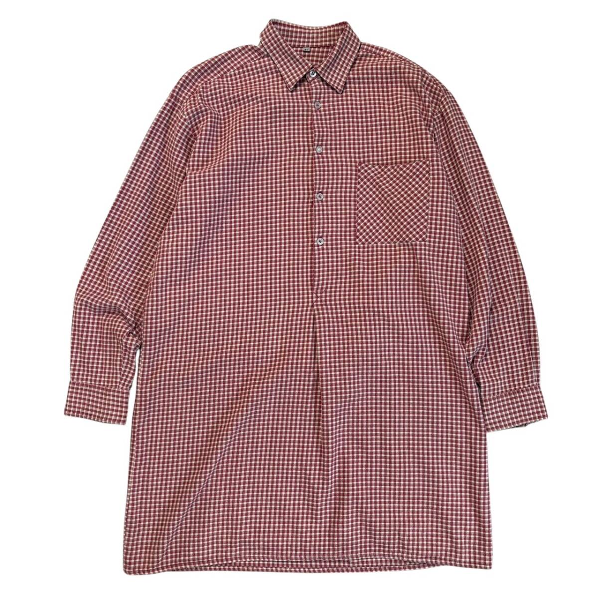 > 70s ユーロ古着 ヴィンテージ 長袖シャツ グランパシャツ プルオーバー ロング丈 チェック柄 コットン 赤 レッド Mサイズ