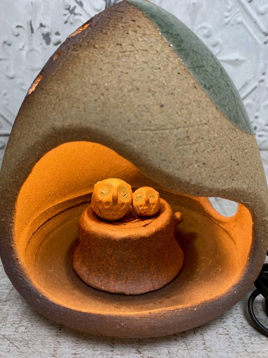 - ★a-2美品 明山 信楽焼 陶器製 フクロウ 梟 ふくろう 不苦労 縁起物 ライト 置物 インテリア オブジェ 照明 間接照明 屋内用 陶印 銘有
