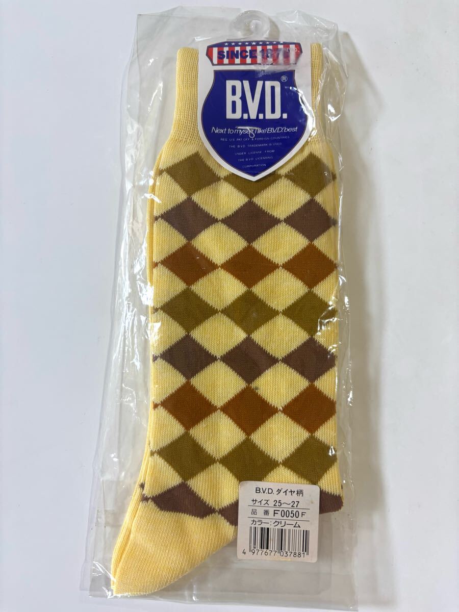 - レトロ BVD ダイヤ柄 メンズ ソックス 25〜27㌢ 新品未使用品