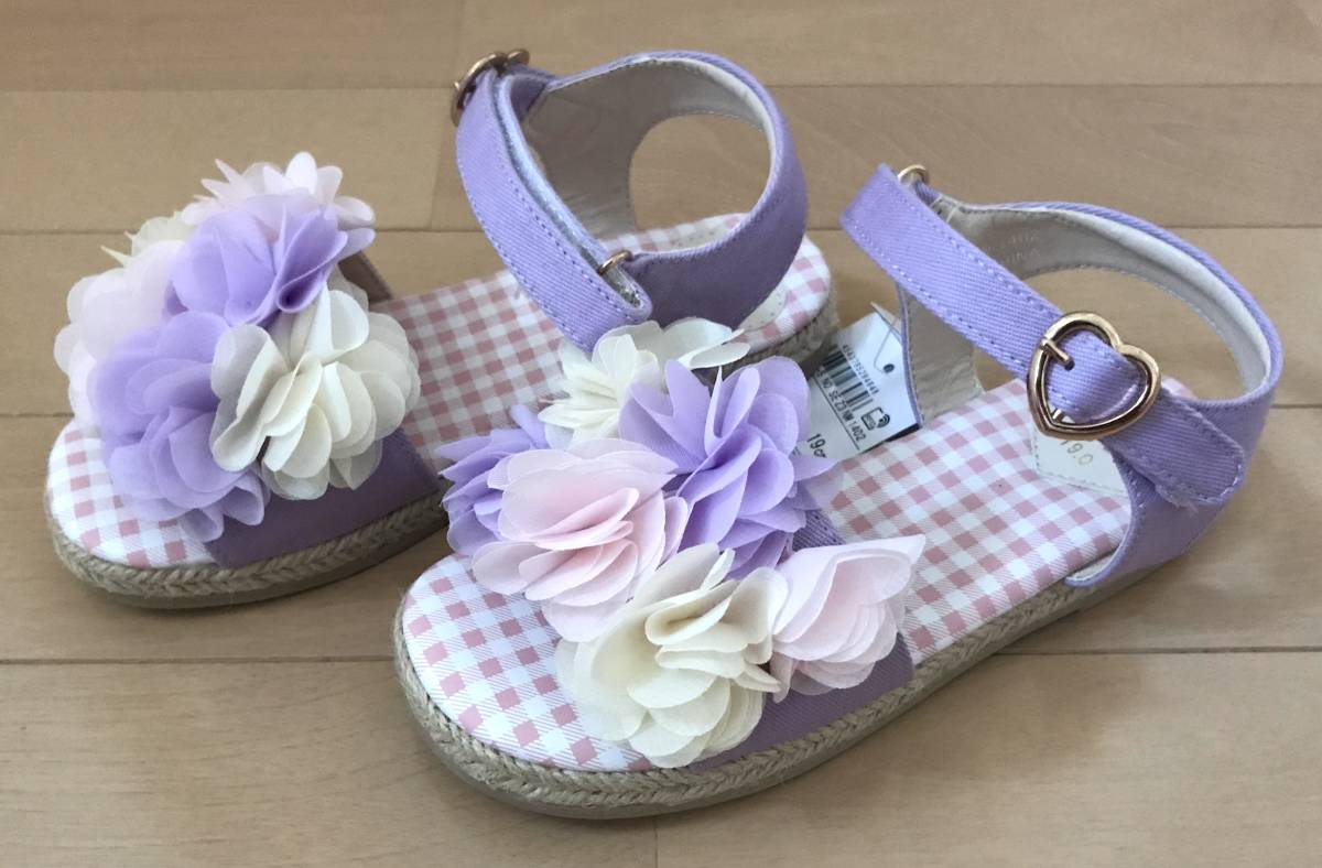 > 新品 未使用 anyFAM KIDS エニィファム オンワード フラワーサンダル SEZ3NM1402 カラー:ラベンダー サイズ:19㎝