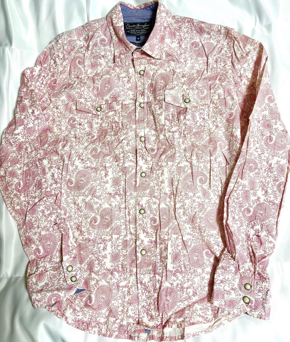 - ピンクペイズリーウエスタンシャツM ピンク系 アメカジ コットン100% 少々難あり