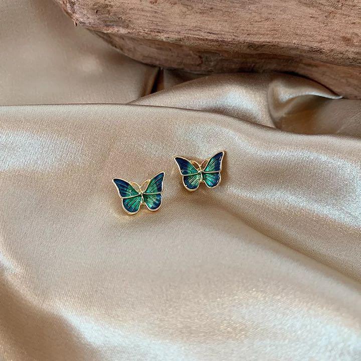 - バタフライピアス 蝶 レディース シルバー925 グリーン プチプラ モチーフ アクセサリー 華奢 緑 小ぶり 韓国 新品