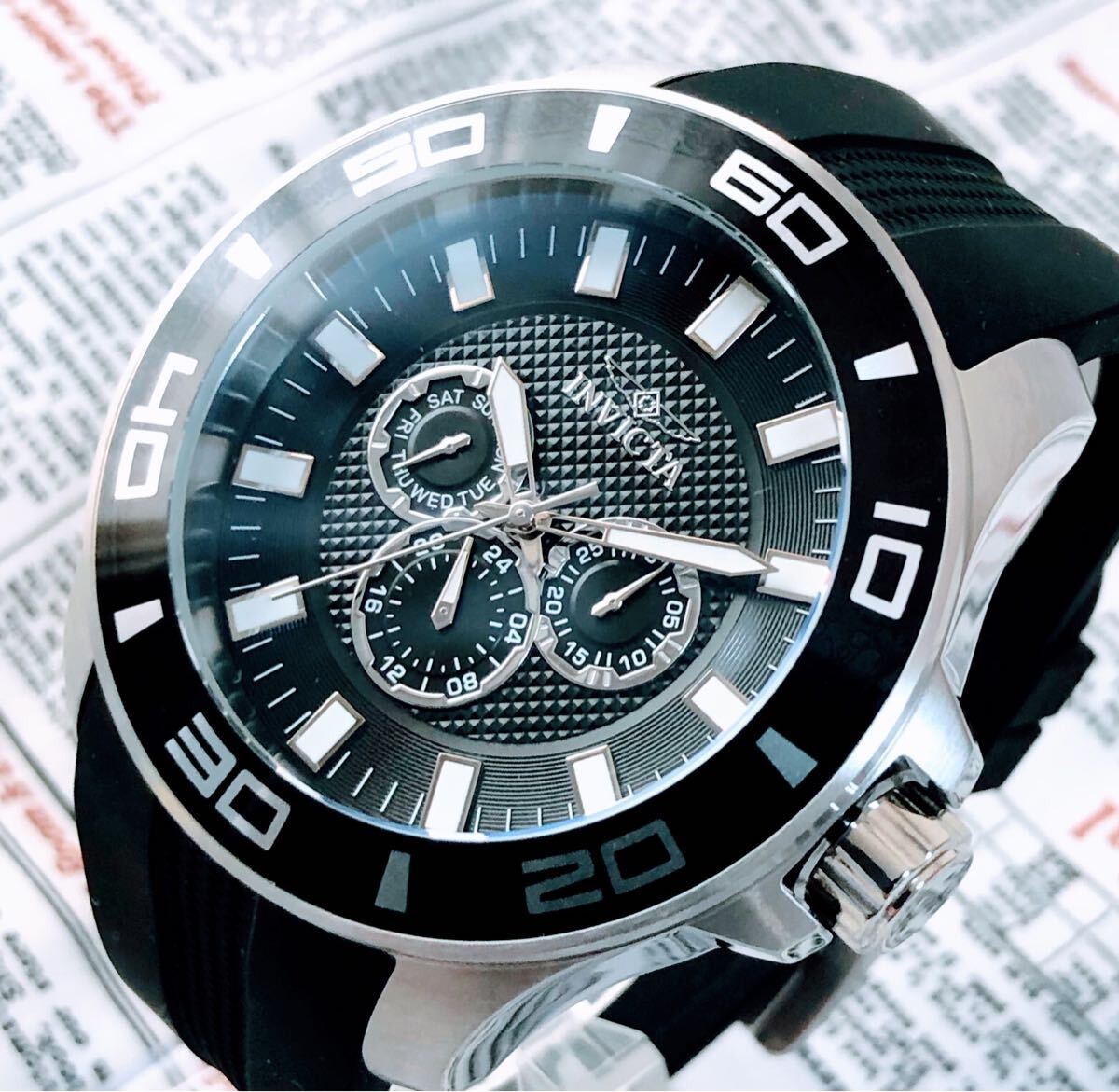 > #3632【お洒落な高級感】メンズ 腕時計 インビクタ Invicta クォーツ 黒ベルト Quartz 動作良好 カレンダー 防水 インヴィクタ ブラック