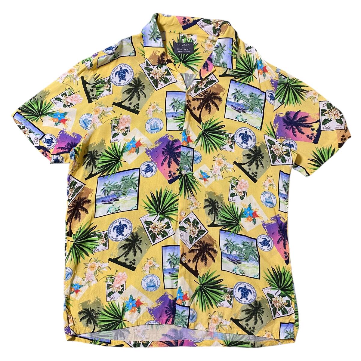 - アメリカ古着 アロハシャツ ハワイアン 総柄 リゾート 開襟 オープンカラー XLサイズ レーヨン 【AL23】