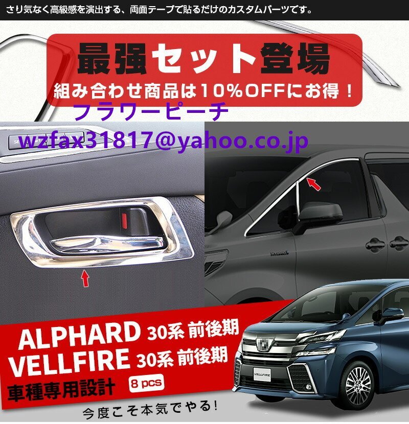 > アルファード/ヴェルファイア 30系 インテリア ドアベゼル ドアハンドルカバー ガーニッシュ&ウィンドウトリム ステンレス(鏡面)