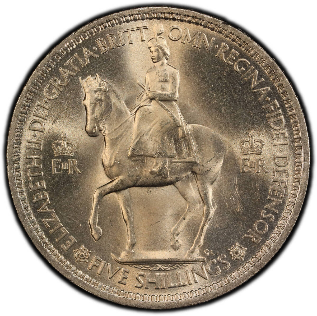 - MS65 1953年 戴冠記念 イギリス エリザベス2世 クラウン 白銅貨 PCGS