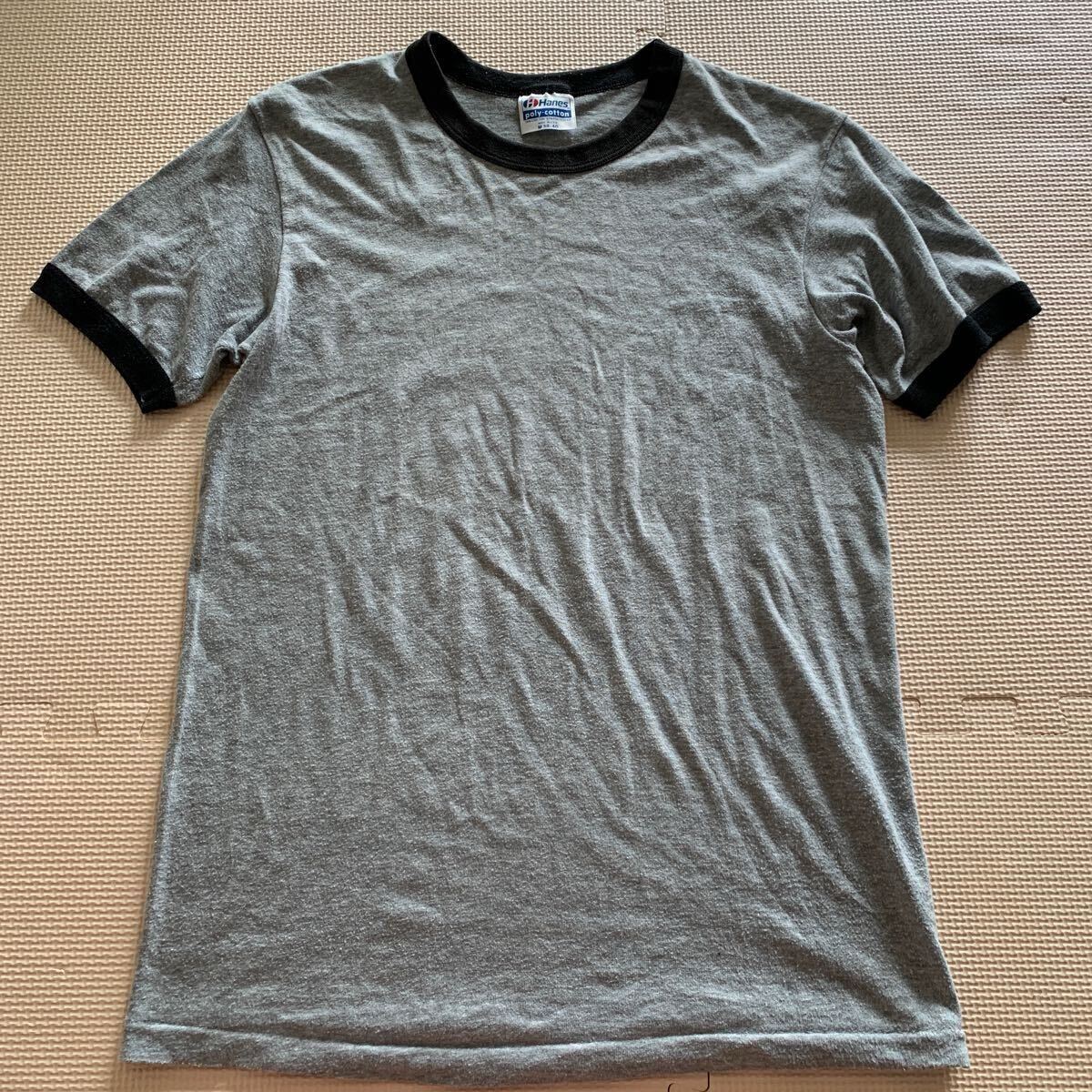 - 80s【Hanes】ヘインズ USA製無地 リンガーTシャツ グレー vintage