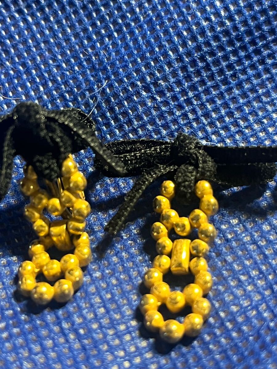 - 一つ接着外れ アンティークイヤリング ゴールドビーズリボンイヤリング リボン バネ式イヤリング 黒ベロアリボン ゴールド イヤリング