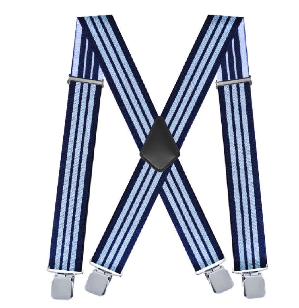 - 【紺×白】サスペンダー X型 4点留め 幅広 太め 長さ調節可能 メンズ
