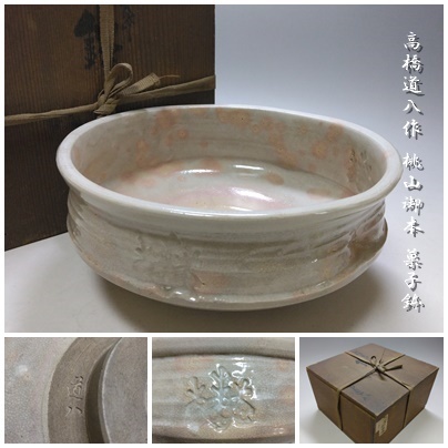 - 【T-393】高橋道八 作 桃山御本 菓子鉢 共箱付 茶道具