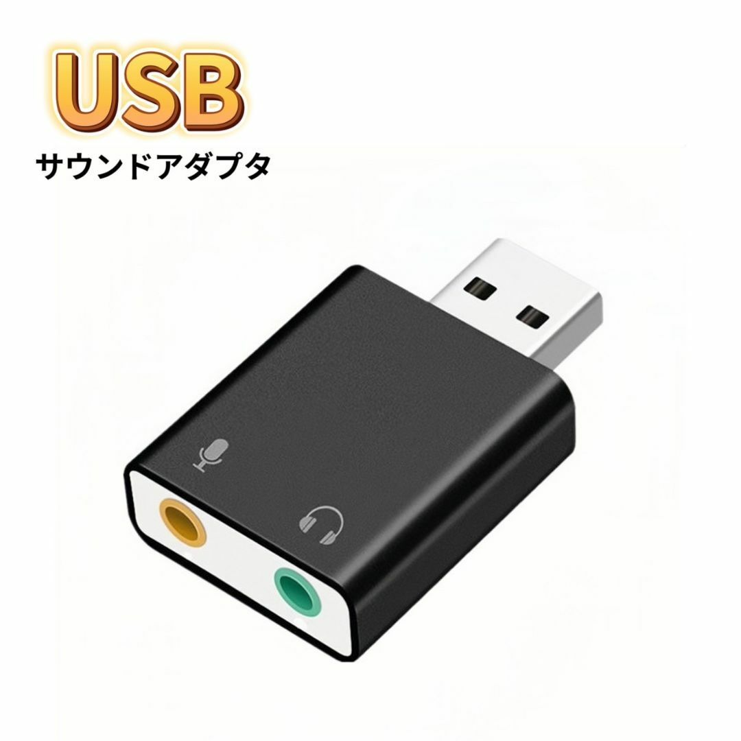 - USBオーディオ変換アダプタ ブラック サウンドカード ヘッドホン 3.5mm