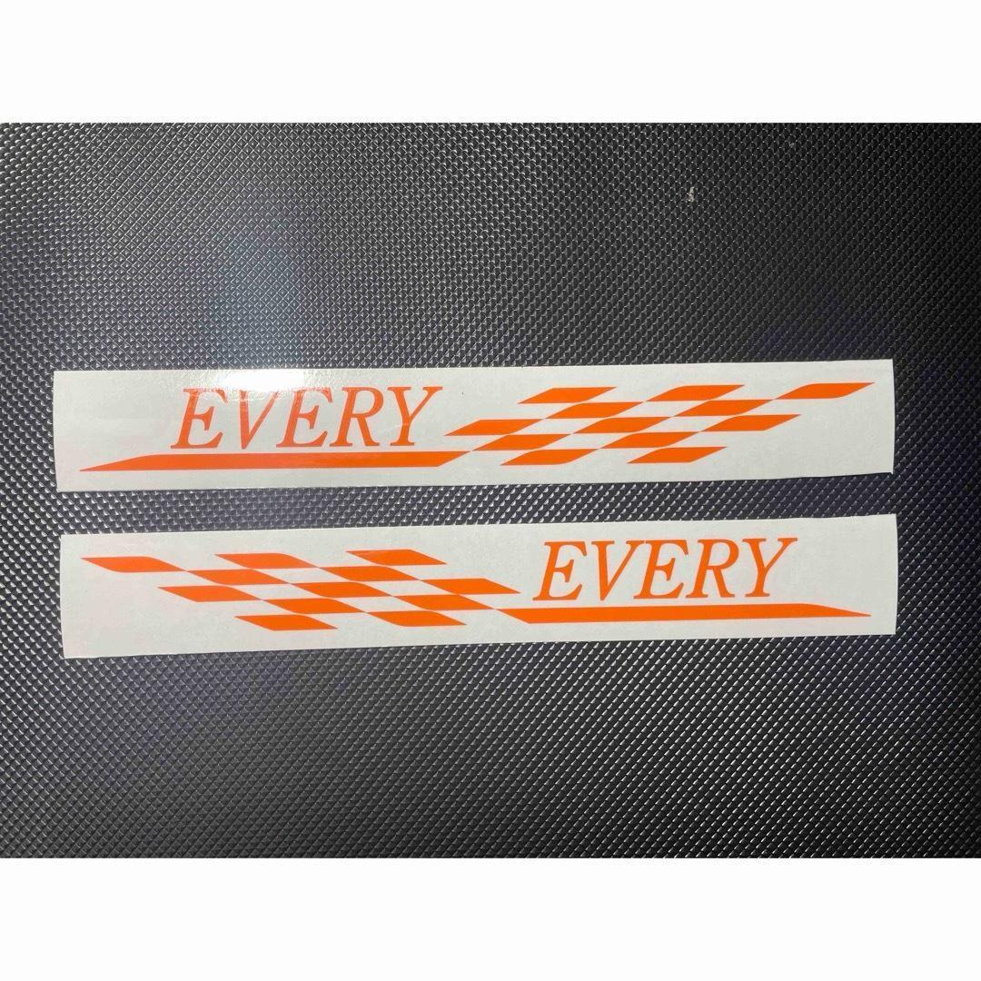 - スズキ エブリイ エブリィ チェッカーフラッグ カッティングステッカー 転写シール 左右セット オレンジ 色変更可能