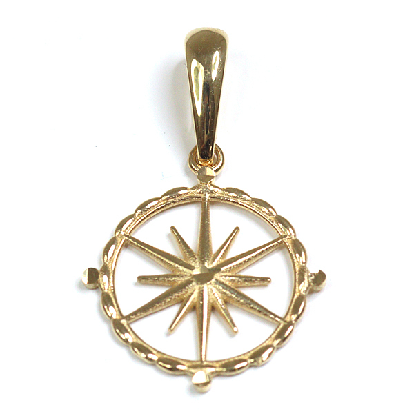 > K18YG 舵輪モチーフ ペンダントトップ 0.9g マリン 船 750YG イエローゴールド チャーム NJ 未使用品
