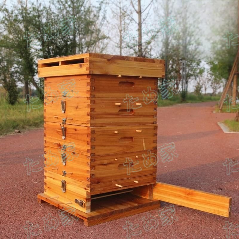- 5階 蜜蜂巣箱 ミツバチ 巣箱 重箱式 養蜂箱 杉材 蜂ハイブ 格子箱 煮蝋 蜜蜂飼育箱 巣枠不要 自然造蜜 防水性と防食性 1窓