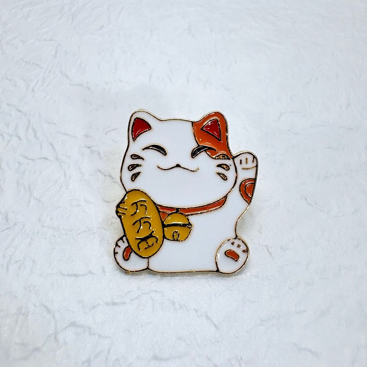 - 【ピンバッジ】三毛猫の招き猫 小判 にゃんこ 招福