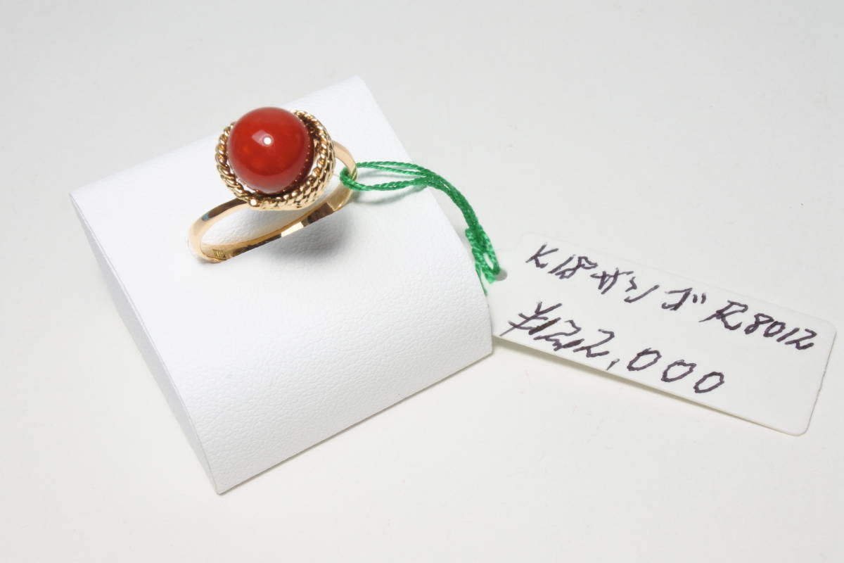 - K18天然血赤珊瑚指輪 珊瑚玉径8mm 12号 3g 未使用品