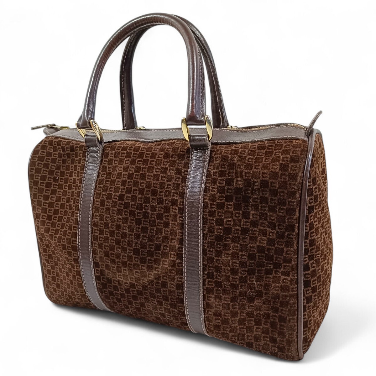 - 【美品】 正規品 GUCCI グッチ ハンドバッグ ミニボストン GG柄 スエード レザー ヴィンテージ レトロ ブラウン 茶色 男女兼用 大容量