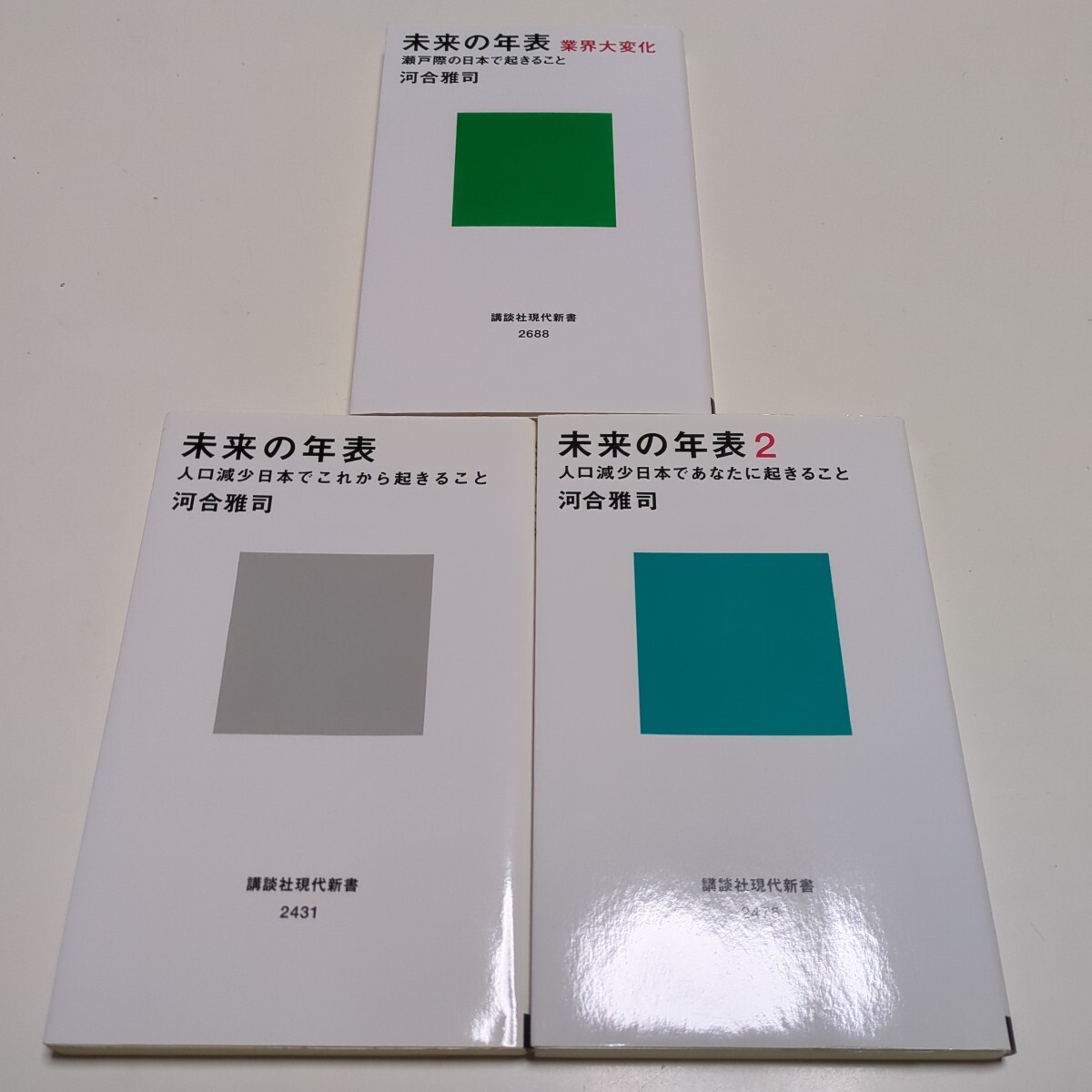 > 河合雅司 3冊セット 未来の年表 1巻 2巻 業界大変化 人口減少日本でこれから起きること あなたに起きること 瀬戸際の日本で起きること 中古