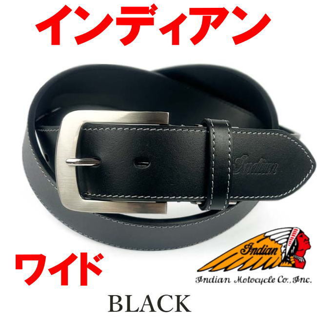 - ブラック インディアン 184 ステッチ ワイドベルト リサイクルレザー 40mm アメリカ最古