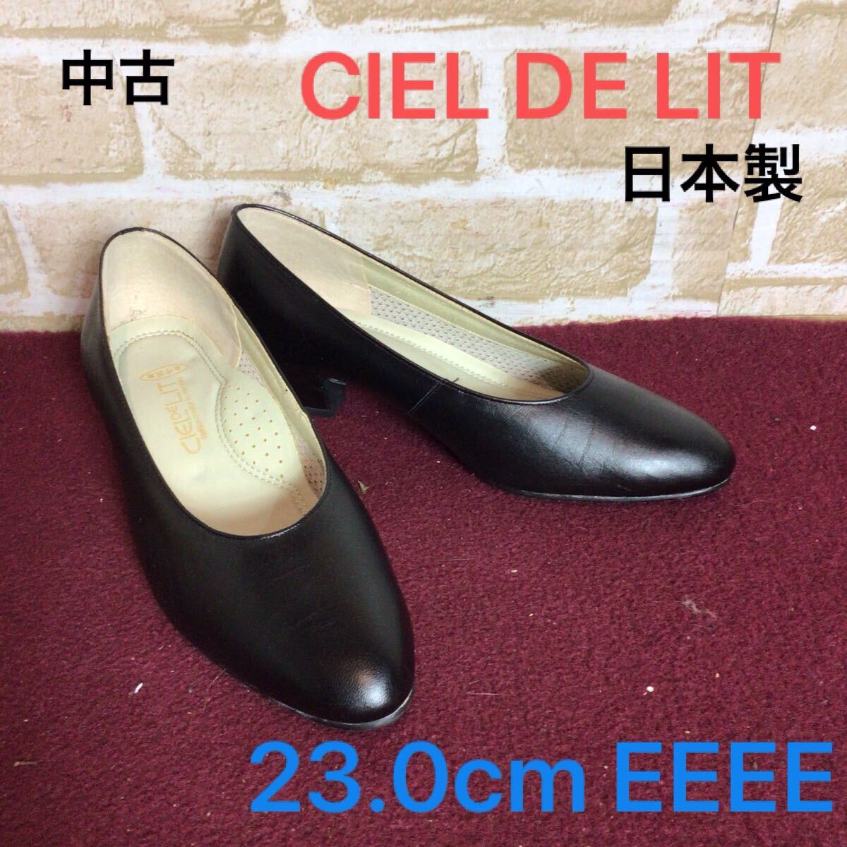 - 【売り切り!送料無料!】A-367 ClEL DE LIT!パンプス!23.0cm EEEE!黒!ブラック!牛革!冠婚葬祭!仕事!ビジネス!フォーマル!日本製!!中古!