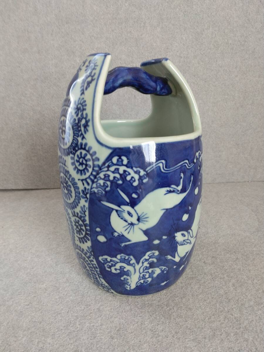 - 花瓶 唐草手桶 水差し 水指 染付ウサギ唐草文 花活け