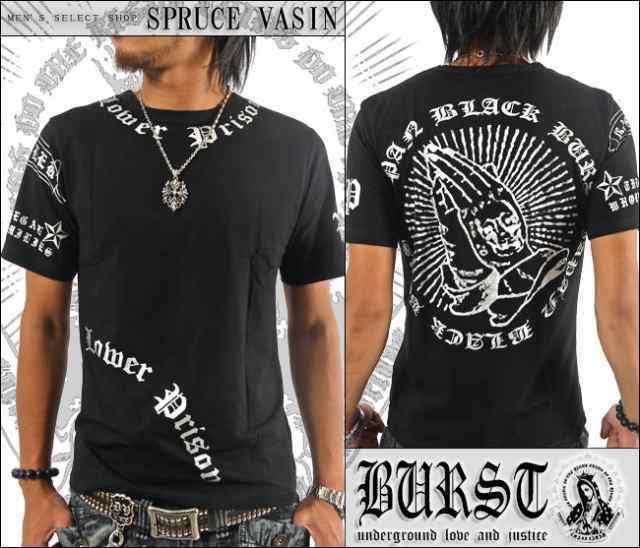> BURST JAPAN ロゴプリント&スカルプレイハンド 合掌 半袖Tシャツ 70535新品 ブラック×シルバー L