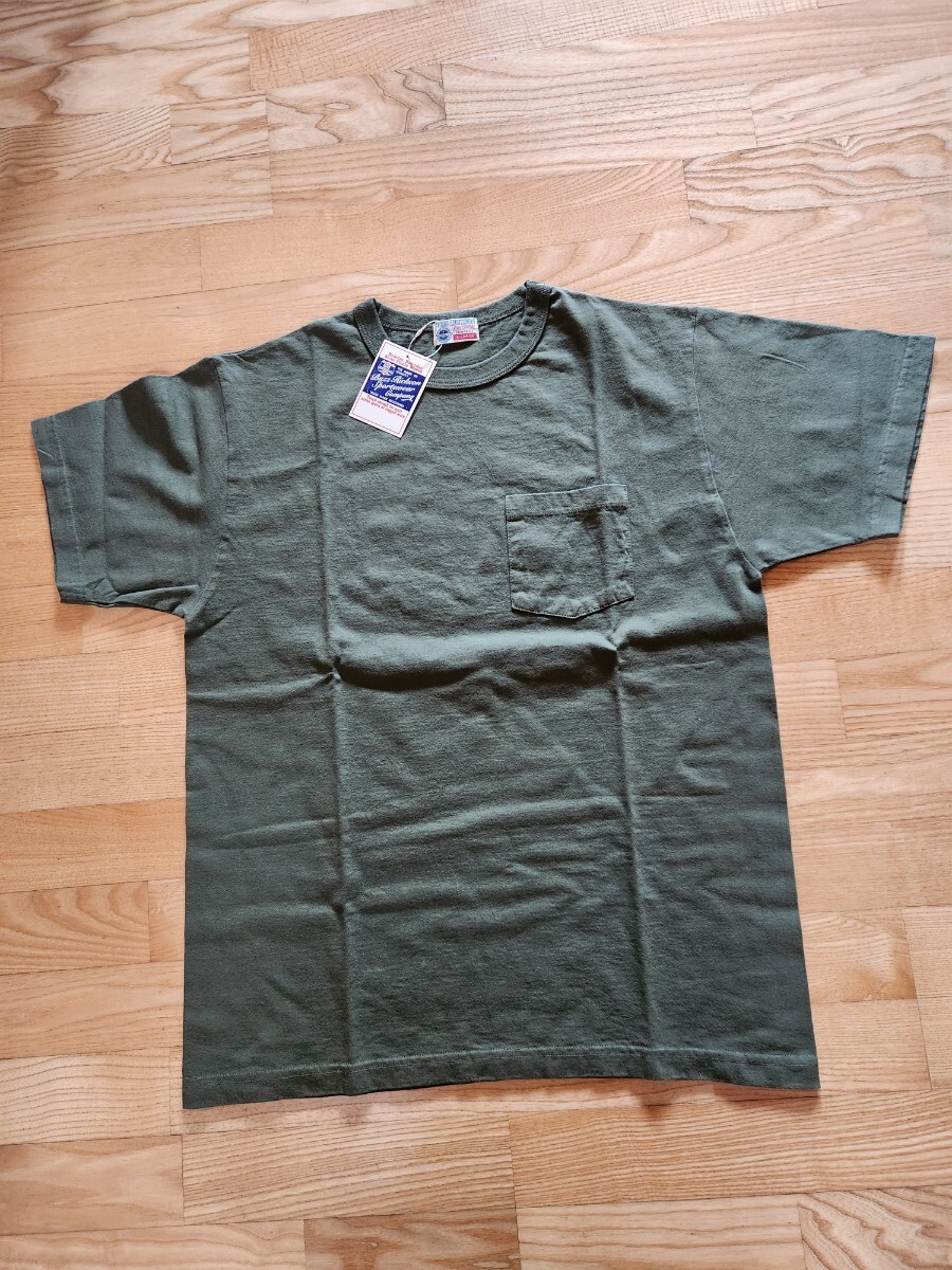 - 新作 送料込★東洋 Buzz Rickson's バズリクソンズ BR78711 無地ポケット付き 半袖Tシャツ 丸胴 バインダーネック アメリカ製 オリーブ XL
