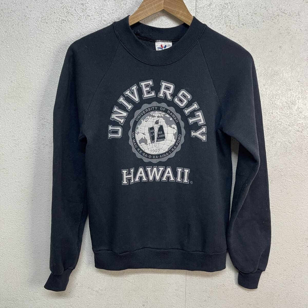 > ft2/15 Tee jays スウェットシャツ USA製 サイズ:S HAWAII UNIVERSITY ネイビー ヴィンテージ 古着 アメカジ トレーナー ユニセックス○