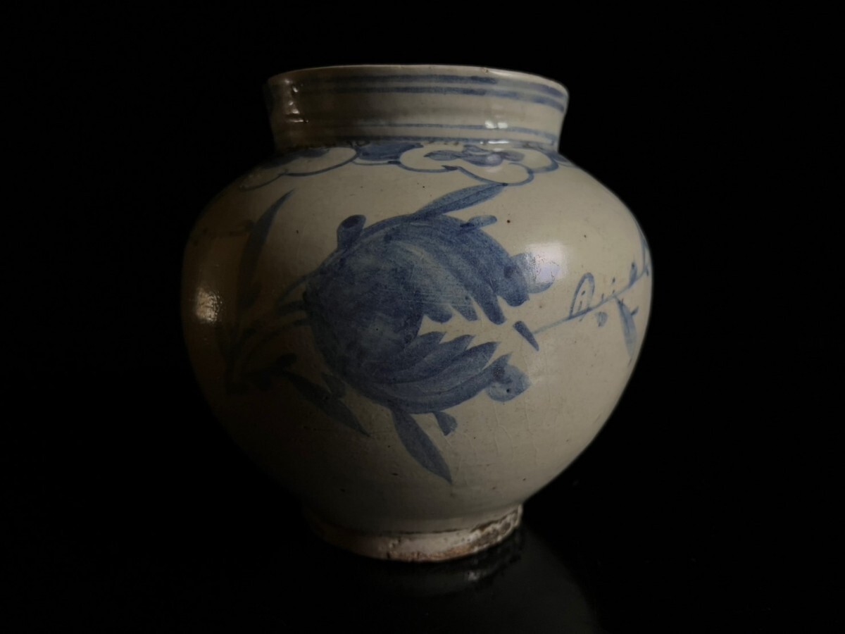> ◇鸛◇ 朝鮮美術 李朝 時代 白磁 染付 花草文提灯壺 17.5cm 花瓶 韓国 高麗 古美術品 朝鮮古陶 唐物骨董