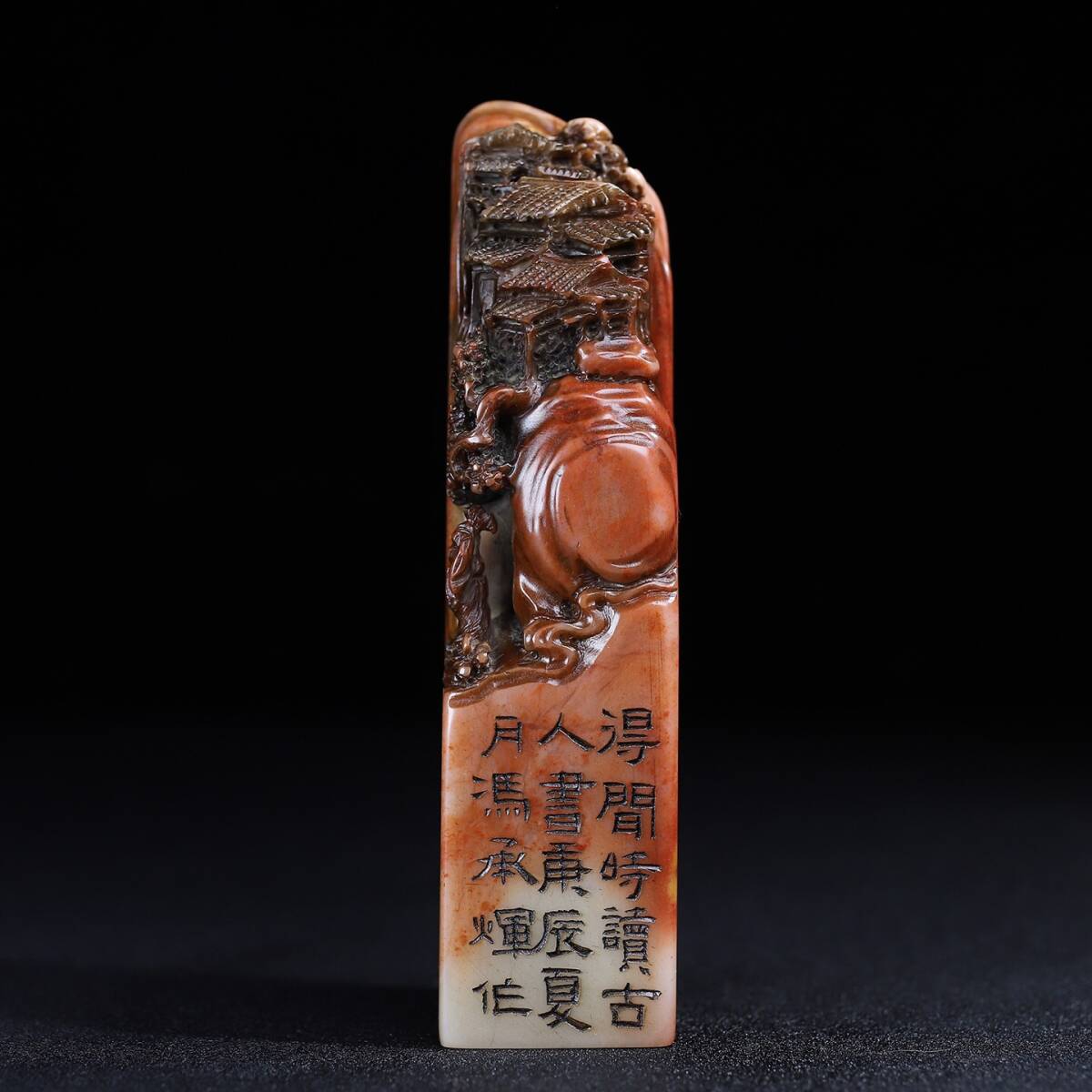 - 【超珍館蔵】寿山石 芙蓉石 細密彫 深山訪友紋印章 文房具 書道品 古賞物 古美術品 稀少珍蔵品